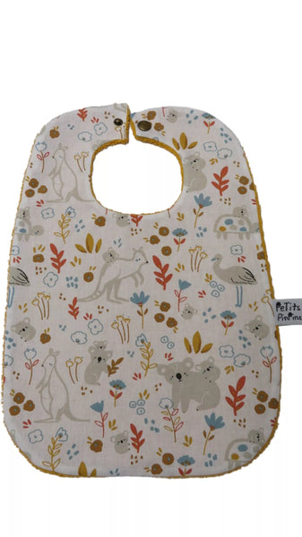 Une face tissu imprimé et une face en éponge toute douce Ce bavoir va faire aimer les repas aux enfants, le tissu est imprimé de motifs colorés et le dessous en éponge permet de ne pas se tacher grâce à son épaisseur et sa qualité.