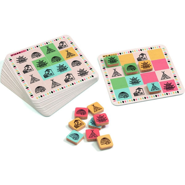 Jeu de logique évolutif, à la manière du sudoku, avec des contraintes supplémentaires. On prend les jetons avec les maisons et on sélectionne un défi. Sur le défi il y a des indications de style d'habitat ou de couleur. Chaque type de maison ne peut être présent qu'une seule fois par ligne, par colonne et par zone colorée. Les zones colorées formées par les 4 jetons d'une même couleur doivent être d'un seul tenant. Ce jeu demande de la concentration et de la réflexion!