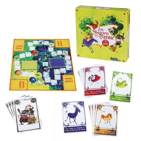 Âne, Chien, Chat et Coq retrouvent vigueur et partent à Brême pour devenir musiciens. Les joueurs vont devoir les aider tout en se méfiant des brigands !