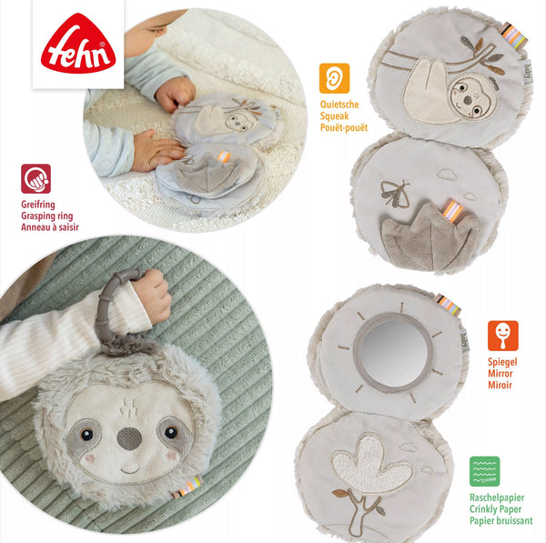 Le livre en tissu doux vous invite à découvrir, rechercher et sentir. Les couineurs, le papier bruissant, les miroirs et le mélange passionnant de matériaux évoquent un sentiment d'émerveillement sur le visage du bébé et encouragent les premiers exercices de préhension, le sens du toucher et contribuent au développement positif de la perception de soi. L'anneau de fixation du livre d'images douillet permet de le fixer facilement et en toute sécurité au siège bébé, à la poussette, au lit bébé ou dans la voiture. Pour s'amuser à la maison ou en déplacement !