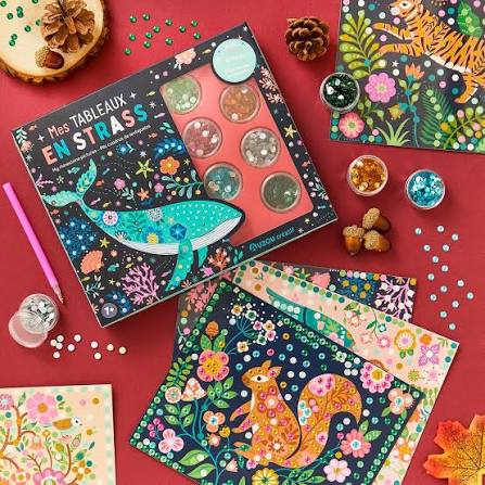 Ce kit comprend 5 tableaux à embellir grâce à un stylet et à plus de 1500 strass multicolores. Chaque réalisation, guidée par une notice explicative, se transforme en une œuvre d'art spectaculaire à exposer fièrement.