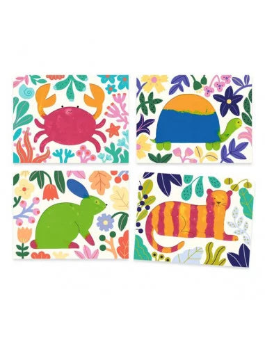 Un premier coffret de peinture propre pour les enfants dès 18 mois. L'enfant ouvre la pochette plastifiée, il verse de la peinture, puis il la referme. Il s'amuse alors à étaler la peinture en passant les doigts sur la pochette pour colorer les animaux sans se salir les mains! Une fois terminé, on rince les pochettes avec un peu d'eau et de savon et on recommence!