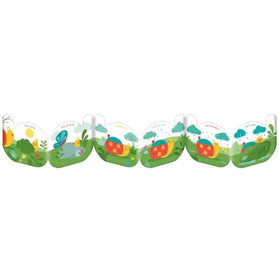 Un joli livre tissu-accordéon autour de la comptine "Petit escargot", conçu pour bébé, avec un tissu certifié et un flap pour plus de surprise !