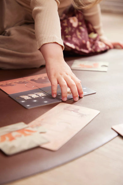 Ce set contient 10 petits puzzles avec deux grosses pièces dans chaque. Ils contiennent des illustrations colorées dessinées à la main présentant de tendres animaux parents et leurs adorables enfants.