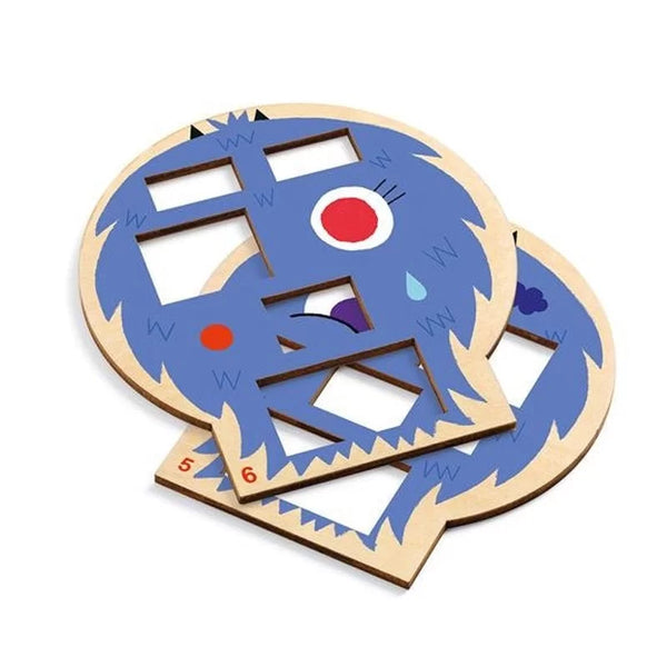 Il faut faire preuve d'observation et de déduction pour reconstituer le visage du monstre proposé par la carte défi. Des visages en bois solides pour une manipulation ludique, Un niveau de difficulté croissant (40 défis) 1 seule solution possible par défi.