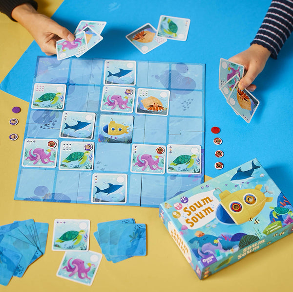 Un groupe de jeunes plongeurs s’aventurent sous l’eau pour observer les animaux. Place au mieux les cartes Océan et tes jetons plongeurs pour réussir la plus belle plongée ! Contenu : 1 plateau, 24 jetons, 35 cartes 6 ans et +