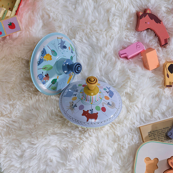 Découvrez notre toupie en métal illustrée avec douceur par Sarah Betz-Cubeely. Cette toupie est équipée d’un levier à crémaillère facile à manipuler. Ce jouet classique et intemporel va aider à développer la motricité fine, la coordination et l’imagination de votre enfant.