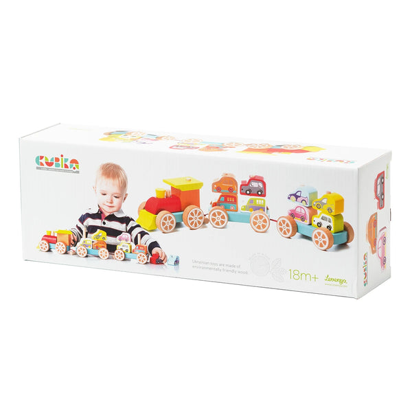 Le train en bois favorise le développement de la motricité fine et t'emmène à la découverte de différentes couleurs et formes.