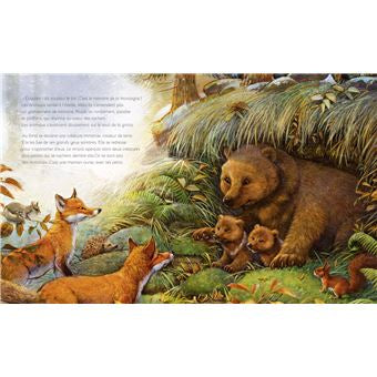 Une histoire qui raconte comment un couple de renards, un écureuil, un loir et un hérisson sont obligés de quitter leur forêt, menacée de déforestation. D’un côté la ville, de l’autre la montagne avec le « monstre couleur de terre ». Ils choisissent de se réfugier dans la montagne. Arrivés devant la grotte du « monstre », ils y découvrent en réalité une maman ourse avec ses petits, prête à les accueillir au chaud, tout contre elle. Une très jolie histoire sur le thème de l'exil, la solidarité et l’entraide. 24 pages 3 ans et +