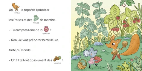 Un joyeux moment de partage entre parents et enfants pour découvrir la lecture grâce à des jolies histoires illustrées de mots-images. Dans ce titre, Souris cueille des fraises des bois dans la forêt pour cuisiner une délicieuse tarte. En chemin, elle rencontre des animaux qui tous veulent y ajouter leur mets préféré. Mais quel pourra bien être le goût de cette drôle de tarte...